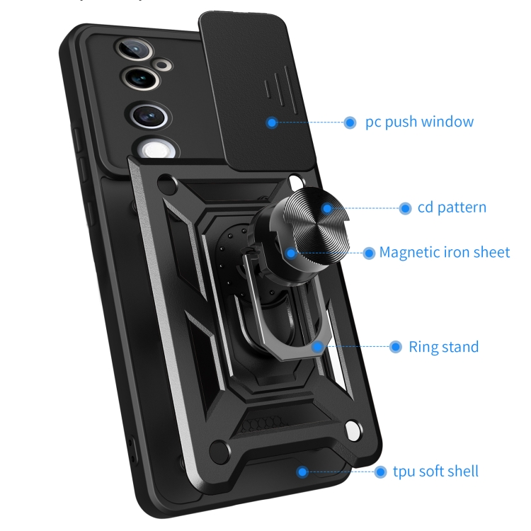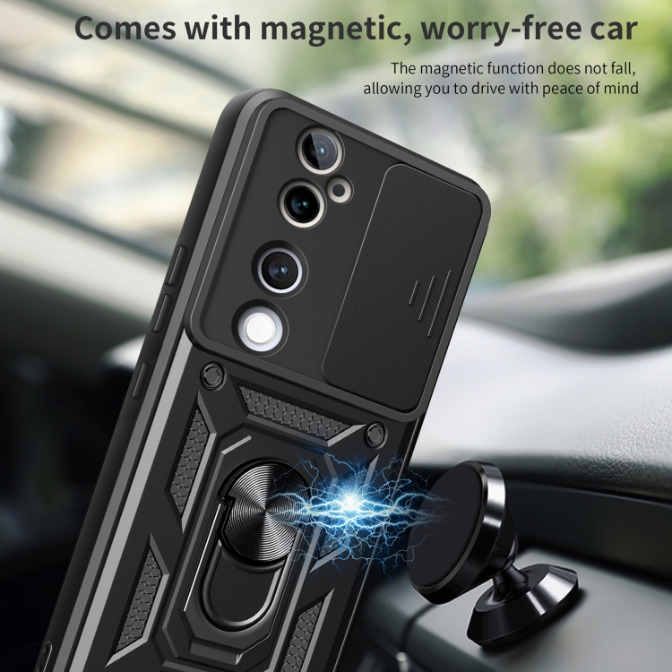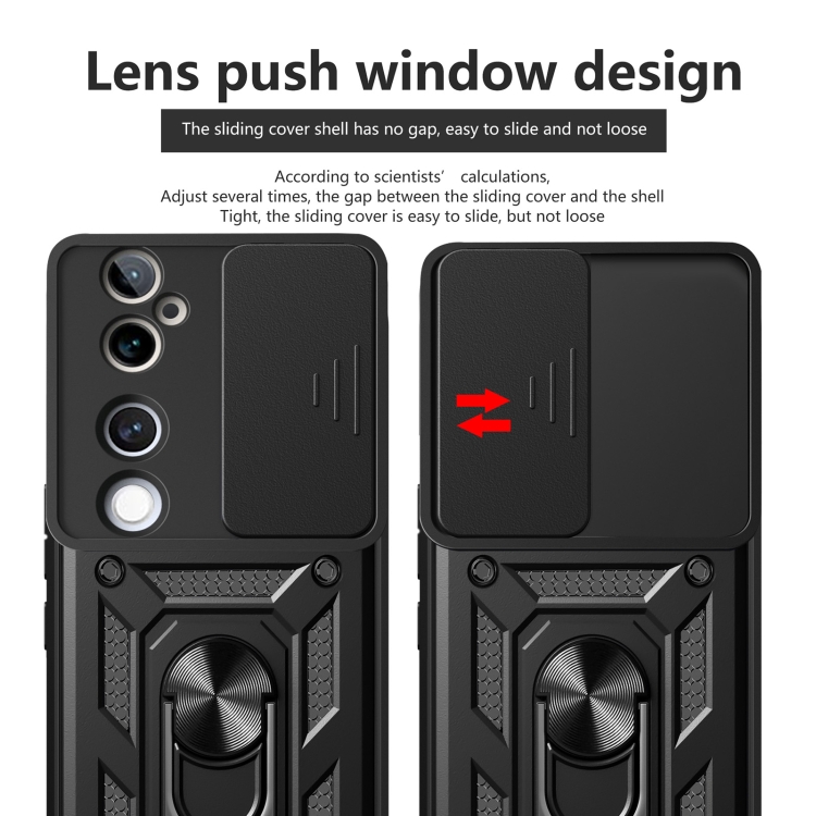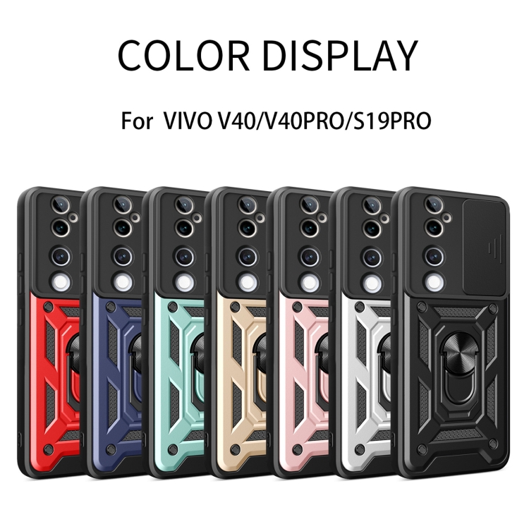 Funda para Teléfono con Diseño de Cubierta Deslizante para Cámara para Vivo V40/V40 Pro/S19 Pro de TPU+PC (Roja)