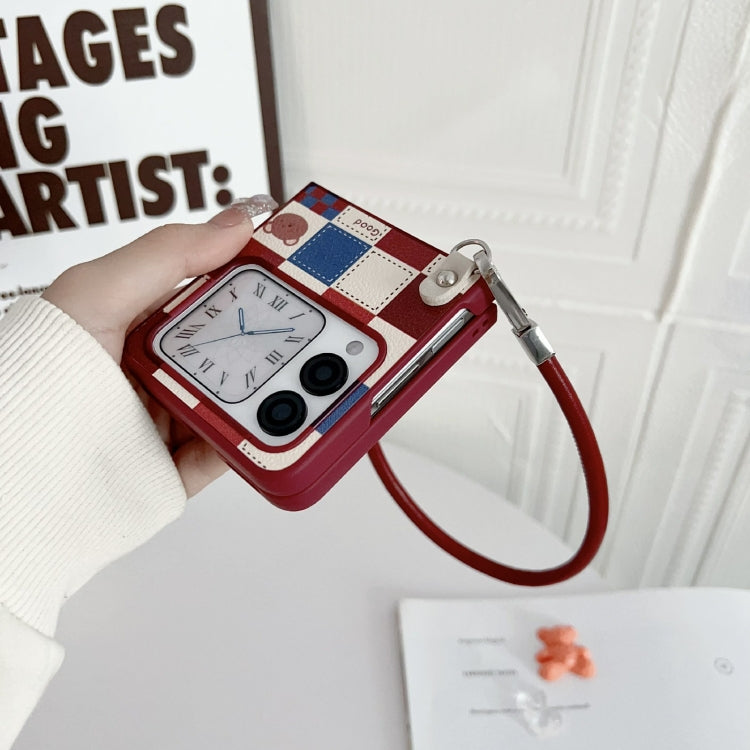 Funda para Huawei Nova Flip con Diseño Osito Enrejado y Correa para Muñeca (Plateada)