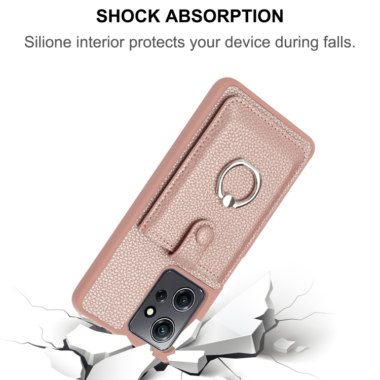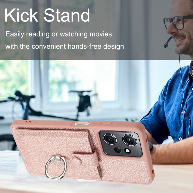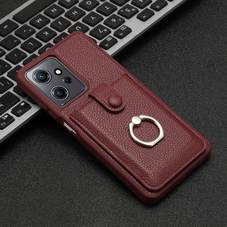 Funda para Teléfono con Diseño de Textura de Lichi y TaRJetero con Anillo para Redmi Note 12 4G (Rojo Vino)