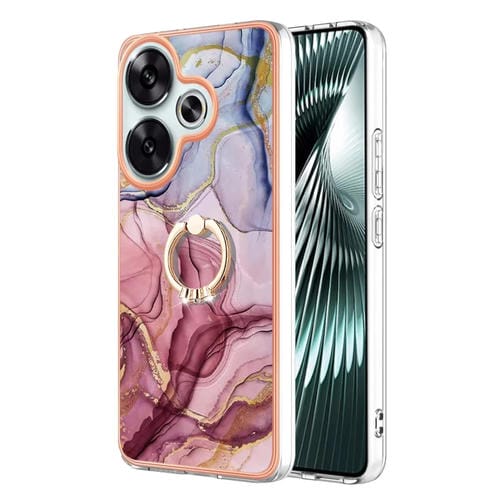Funda para Teléfono con Imd de Doble Cara con Galvanoplastia de Mármol para Xiaomi Poco F6 5G con Anillo (Rojo Rosa 014)
