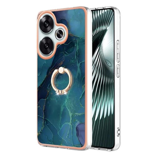 Funda para Teléfono con Imd de Doble Cara con Galvanoplastia de Mármol para Xiaomi Poco F6 5G con Anillo (Verde 017)