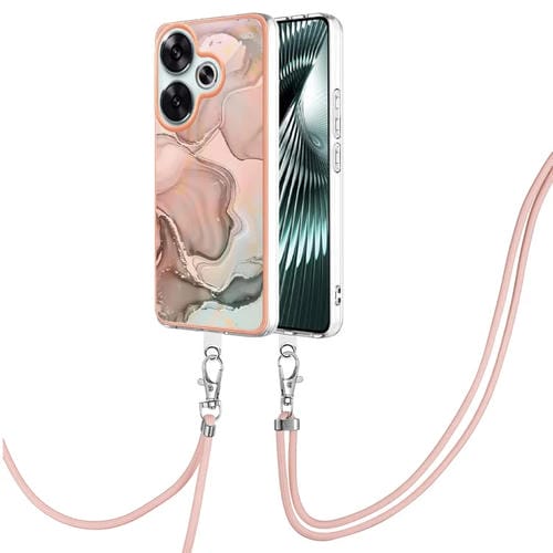Funda para Teléfono con Imd de Doble Cara con Galvanoplastia de Mármol para Xiaomi Poco F6 5G con Cordón (Oro Rosa 015)
