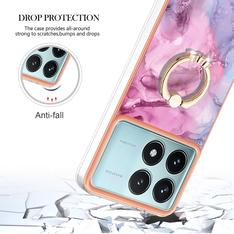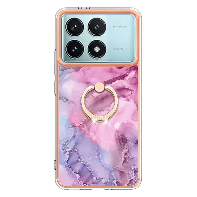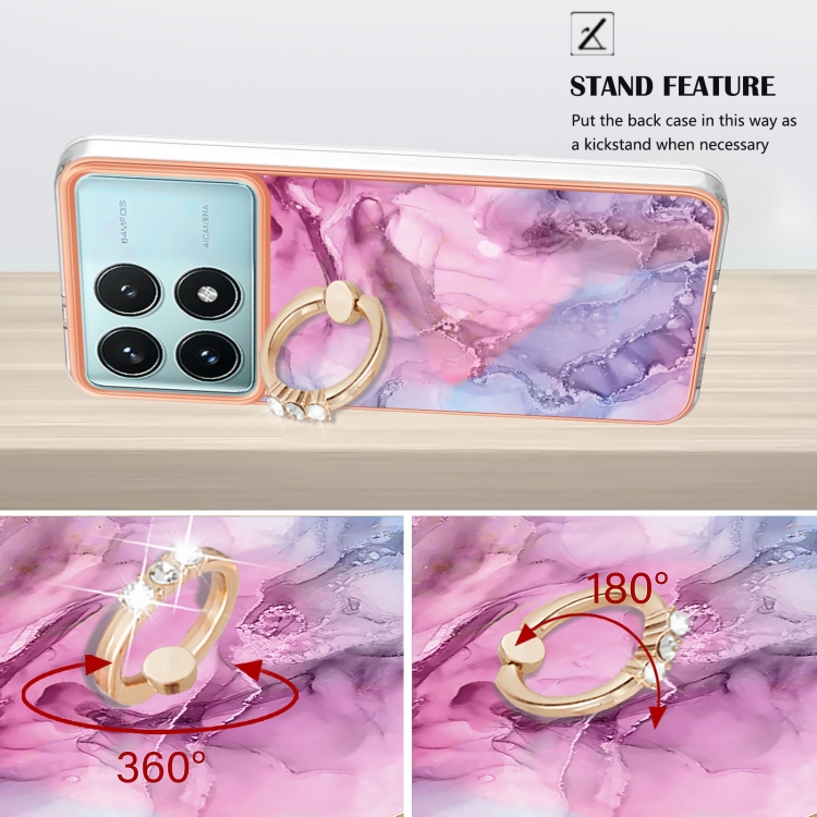 Funda para Teléfono con Imd de Doble Cara con Galvanoplastia de Mármol para Xiaomi Poco F6 Pro 5G con Anillo (Rosa 013)