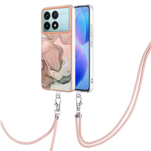 Funda para Teléfono con Imd de Doble Cara con Galvanoplastia de Mármol para Xiaomi Poco F6 Pro 5G con Cordón (Oro Rosa 015)