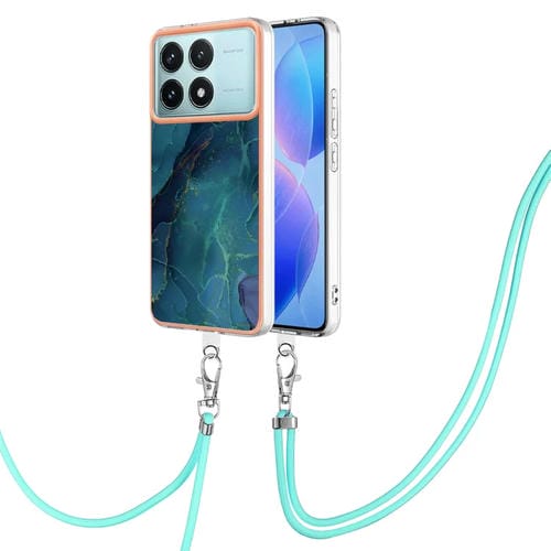Funda para Teléfono con Imd de Doble Cara con Galvanoplastia de Mármol para Xiaomi Poco F6 Pro 5G con Cordón (Verde 017)