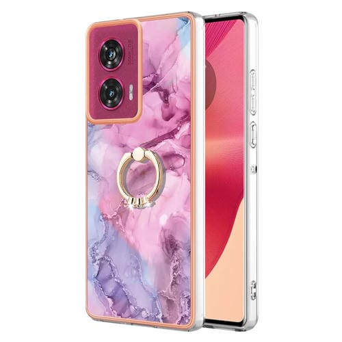 Funda para Teléfono Motorola Edge 50 Fusion con Imd Doble Cara, Galvanoplastia Mármol y Anillo (Rosa)