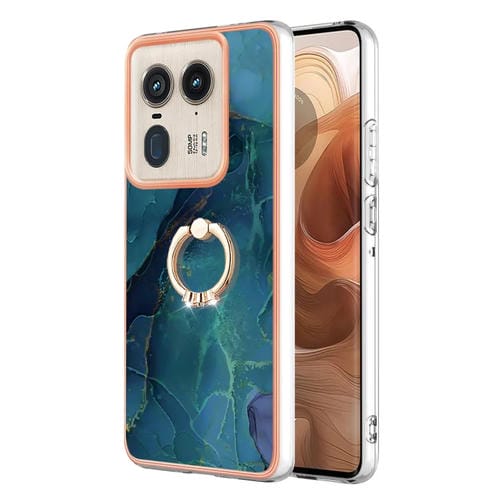 Funda para Teléfono Motorola Edge 50 Ultra con Imd Doble Cara, Galvanoplastia Mármol y Anillo (Verde)