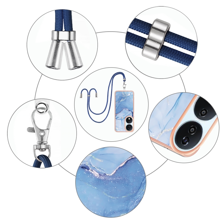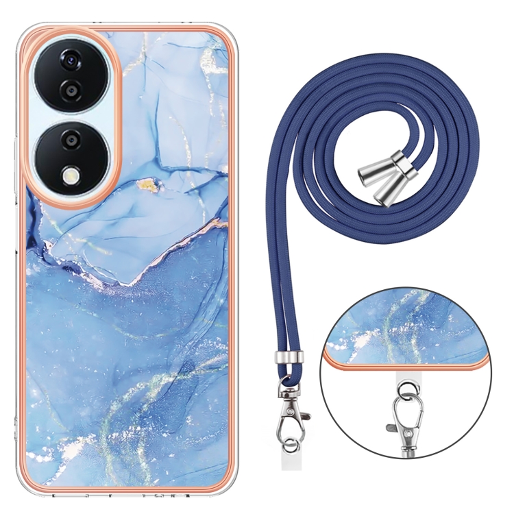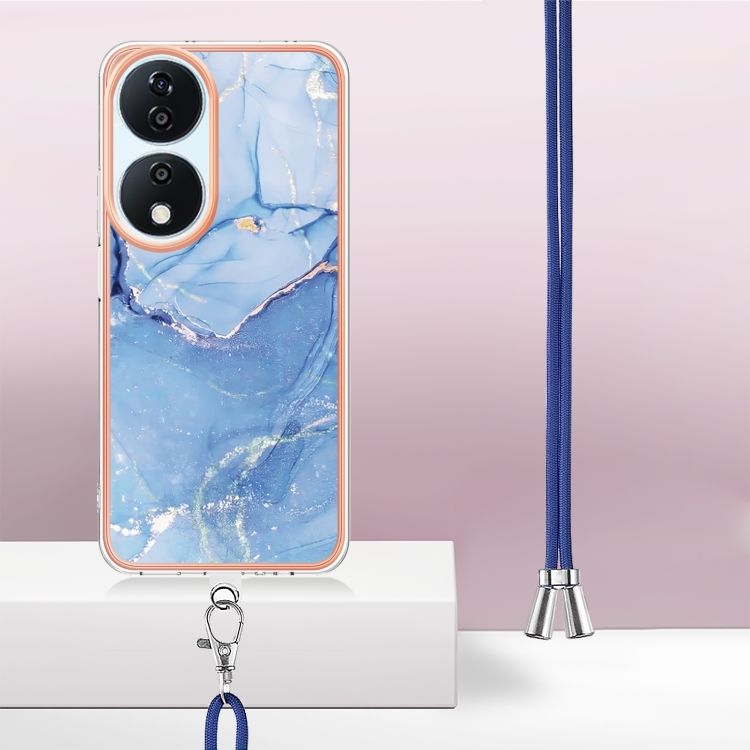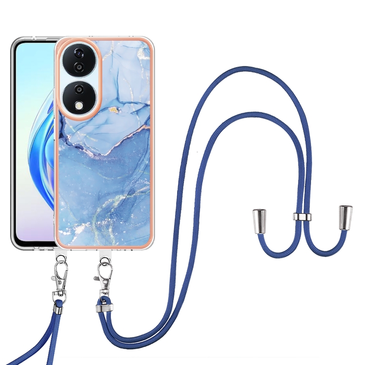 Funda para Teléfono Honor X7B 4G/5G con Imd Doble Cara y Mármol Galvanizado (Azul) con Cordón