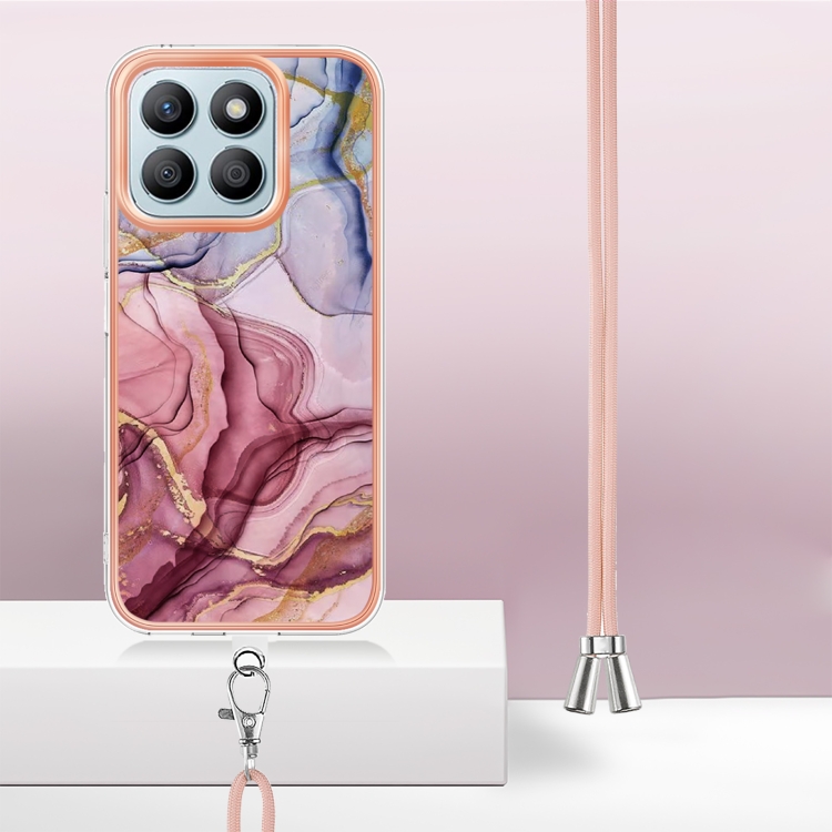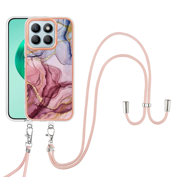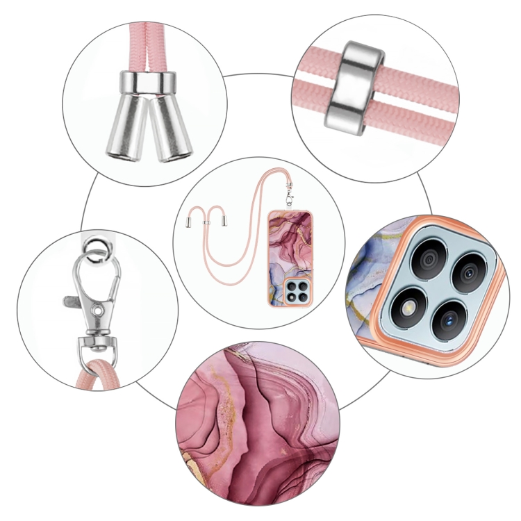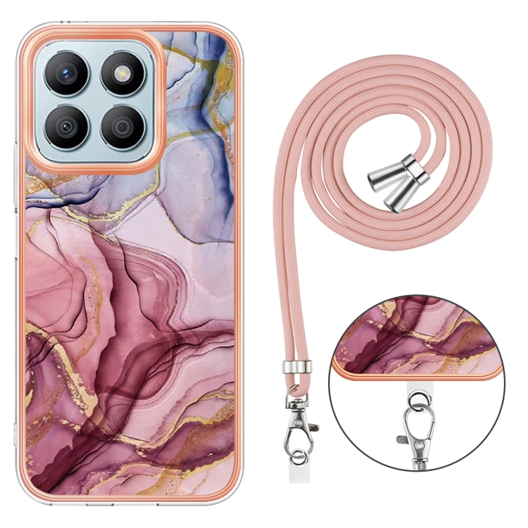 Funda para Teléfono Honor X8B con Imd Doble Cara Mármol Galvanizado y Cordón (Rojo Rosa)