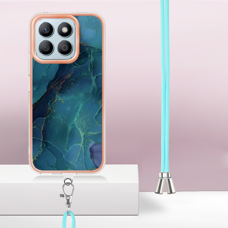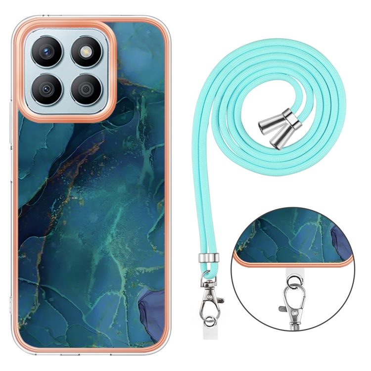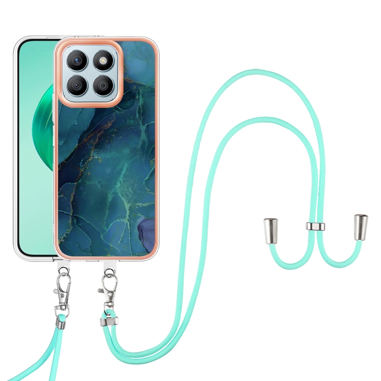 Funda para Teléfono Honor X8B con Imd Doble Cara Revestimiento Mármol Galvanizado y Cordón (Verde)