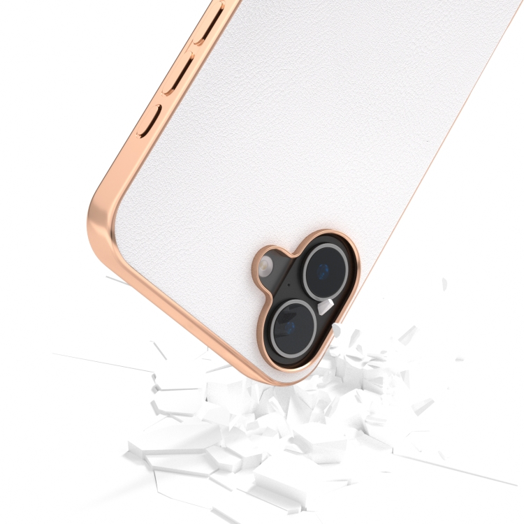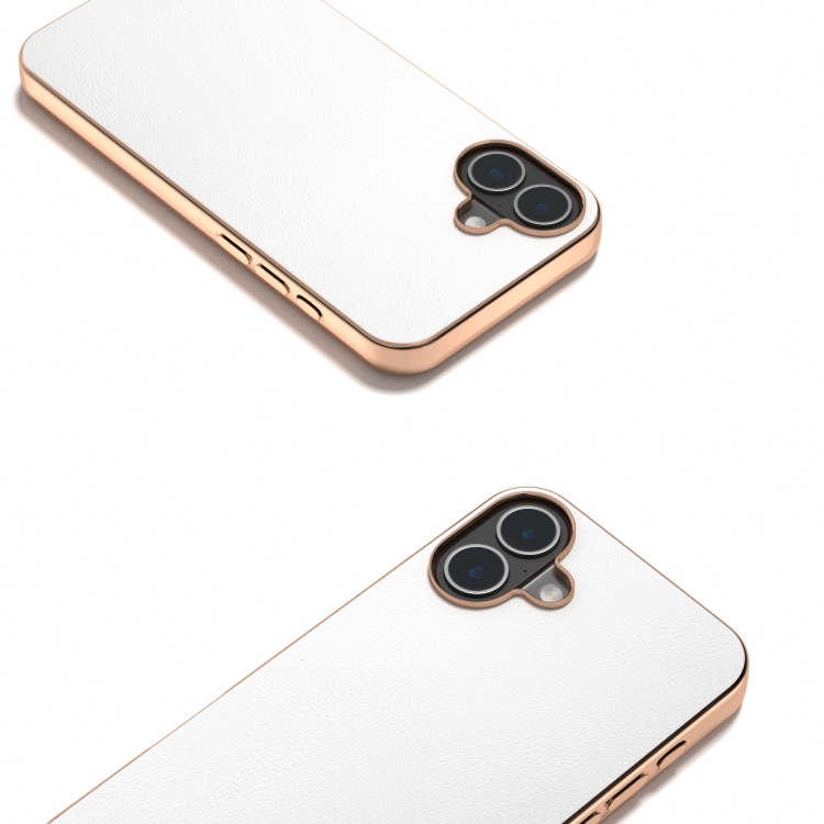 Funda para Teléfono iPhone 16 Marco Galvanizado Cuero Sintético Cobertura Total (Blanco)