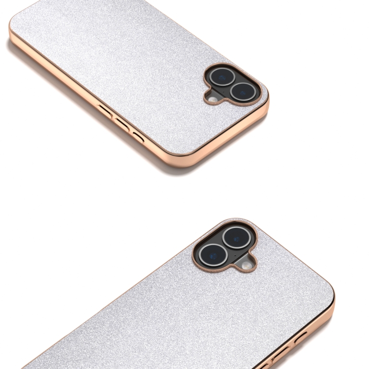Funda para Teléfono iPhone 16 Plus Marco Galvanizado Purpurina Prueba de Golpes (Plateada)