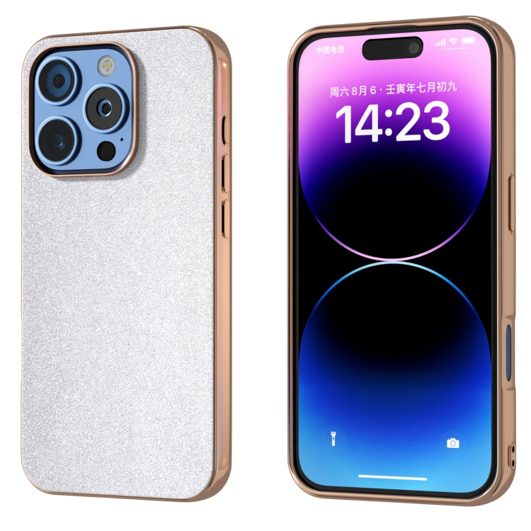 Funda para Teléfono iPhone 16 Pro Marco Galvanizado Purpurina Prueba de Golpes (Plateada)