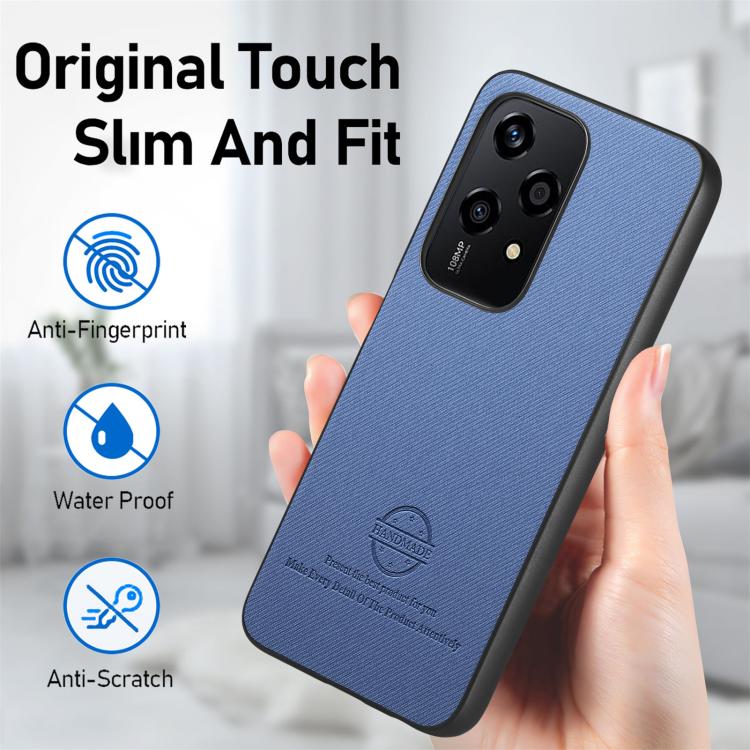 Funda para Teléfono Honor 200 Lite con Parte Trasera de Piel y Tejido de Sarga (Azul)