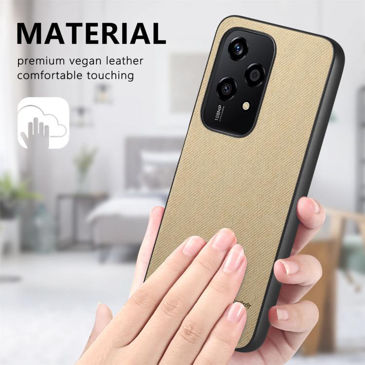 Funda para Teléfono Honor 200 Lite con Parte Trasera de Piel y Tejido de Sarga (Caqui)