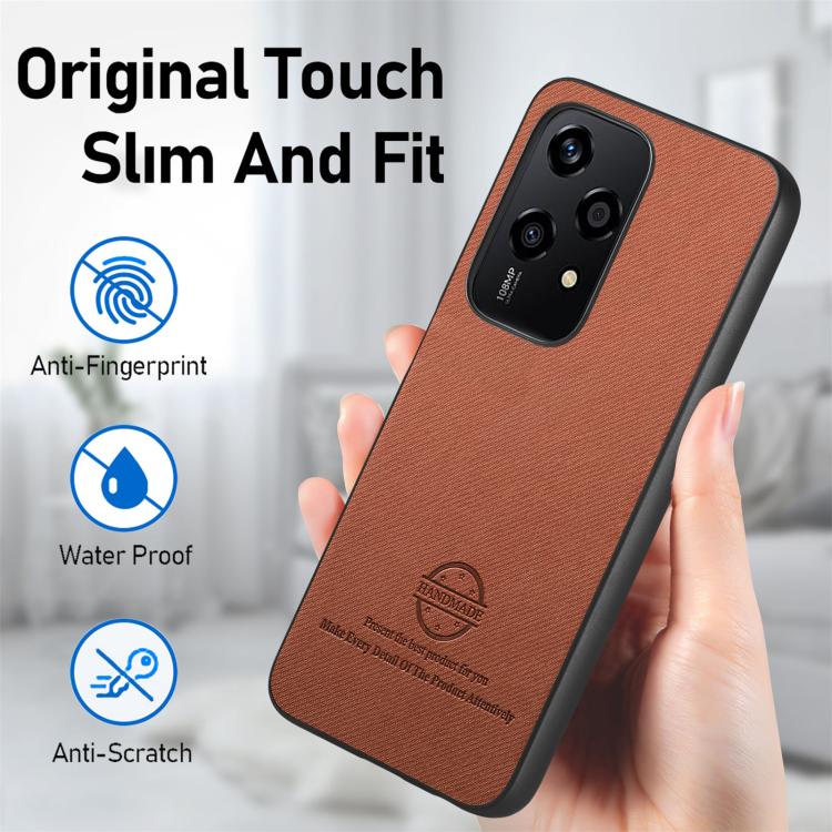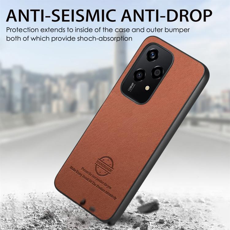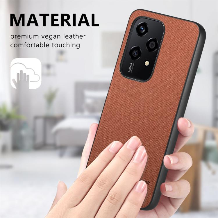 Funda para Teléfono Honor 200 Lite con Parte Trasera de Piel y Tejido de Sarga (Marrón)