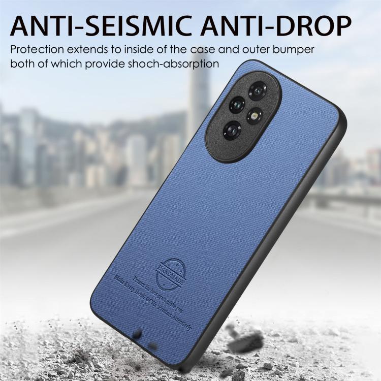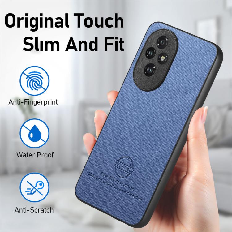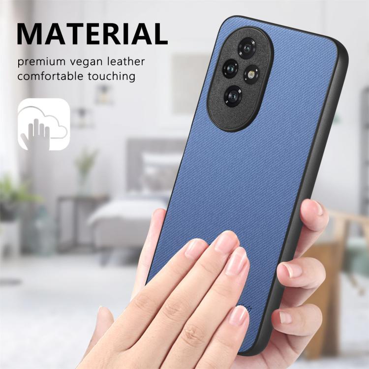 Funda para Teléfono Honor 200 Pro con Parte Trasera de Piel y Tejido de Sarga (Azul)