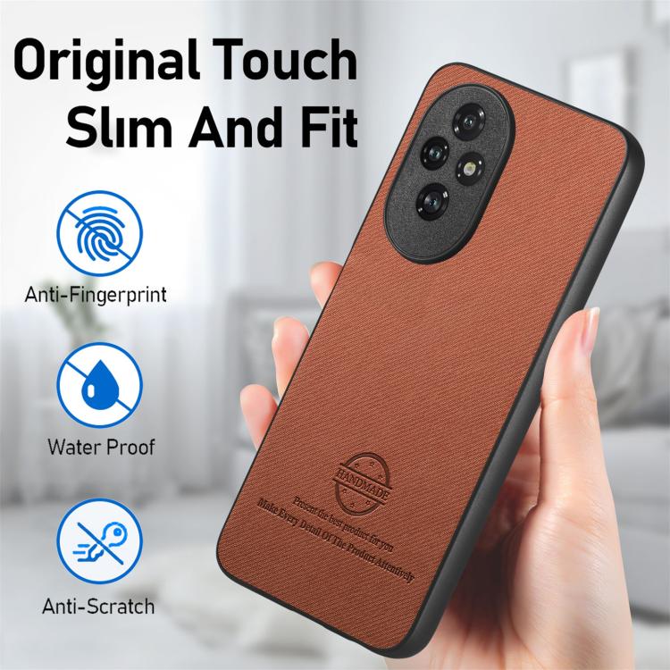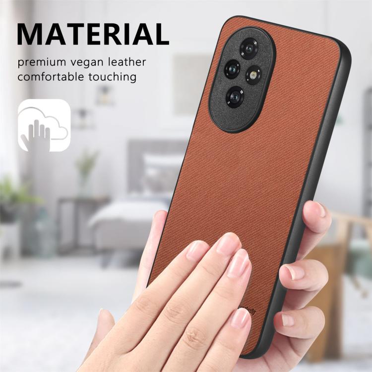 Funda para Teléfono Honor 200 Pro con Parte Trasera de Piel y Tejido de Sarga (Marrón)