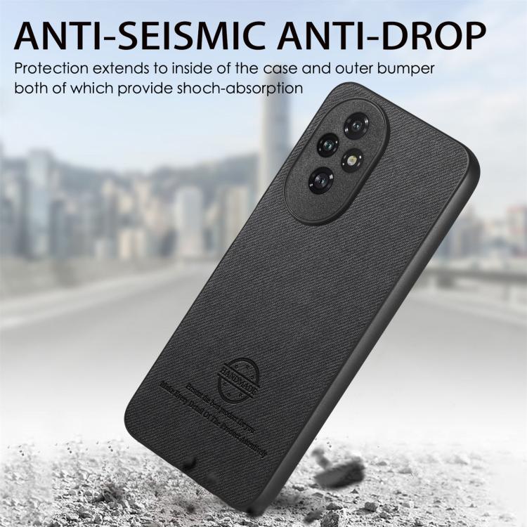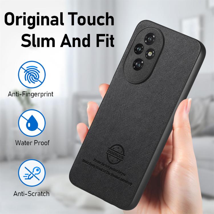 Funda para Teléfono Honor 200 Pro con Parte Trasera de Piel y Tejido de Sarga (Negra)
