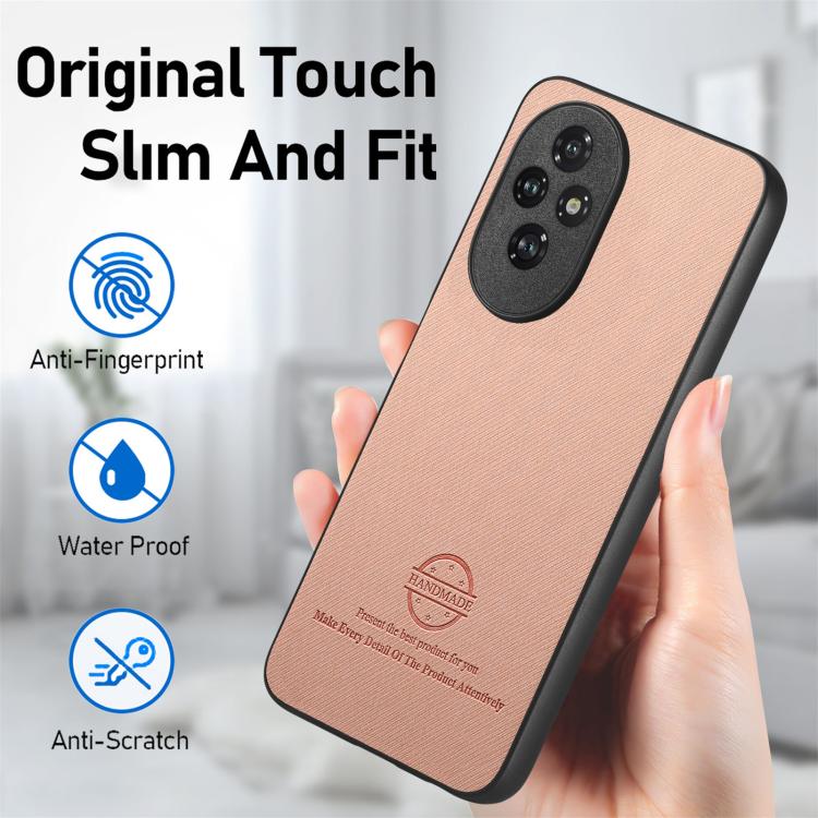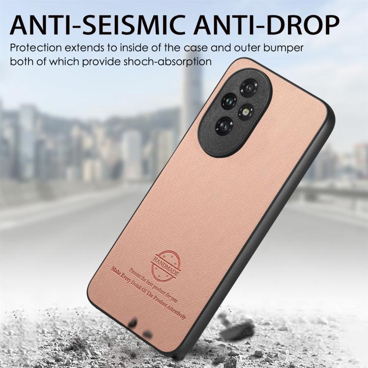 Funda para Teléfono Honor 200 Pro con Parte Trasera de Piel y Tejido de Sarga (Rosa)
