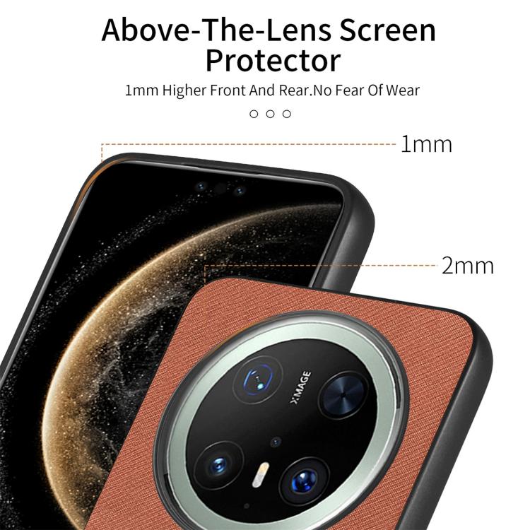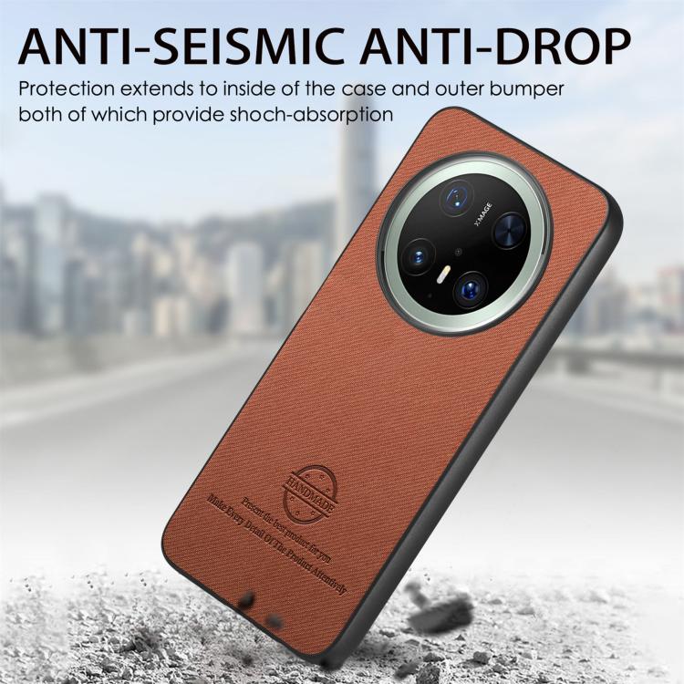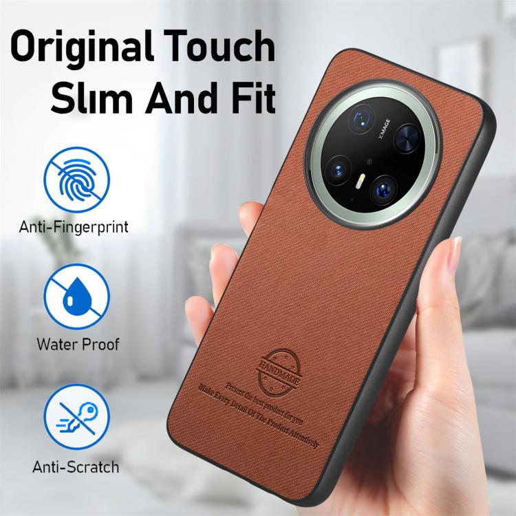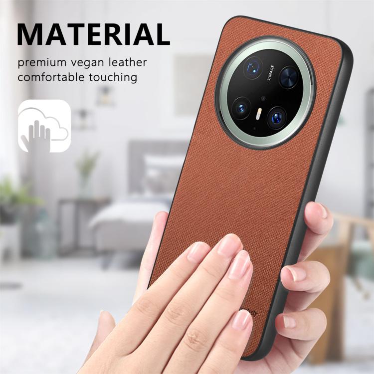 Funda para Teléfono Huawei Mate 70 Pro+ con Parte Trasera de Piel y Tejido de Sarga (Marrón)