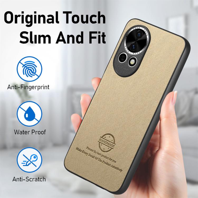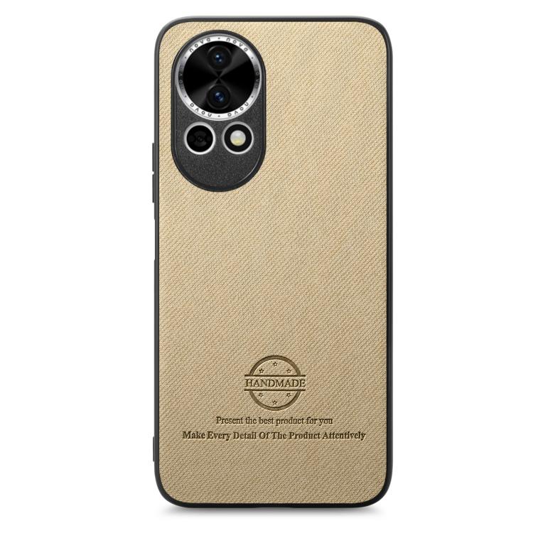 Funda para Teléfono Huawei Nova 13 Pro con Parte Trasera de Piel y Tejido de Sarga (Caqui)