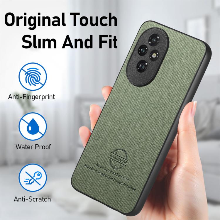 Funda para Teléfono Honor 200 con Parte Trasera de Piel y Tejido de Sarga (Verde)