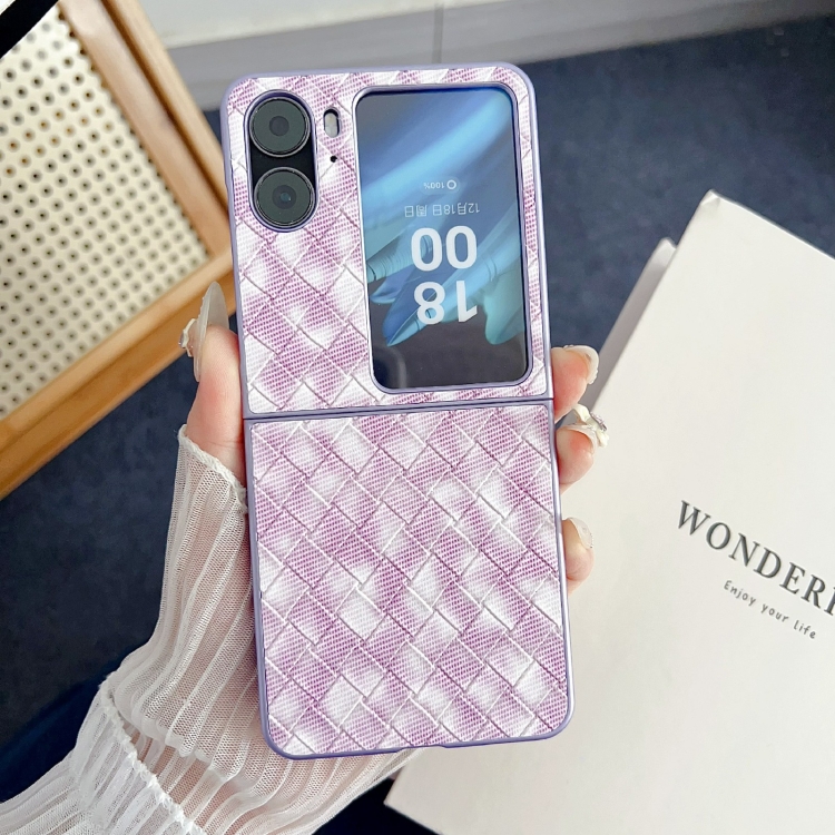 Funda para Teléfono con Patrón Tejido Colorido y Cobertura Total para Oppo Find N2 Flip (Morado)