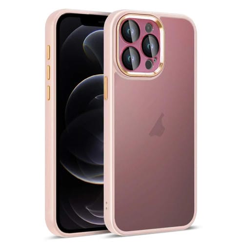 Funda para Teléfono iPhone 12 Pro Armadura Colorida Translúcida con Película Protectora de Lente y Tacto de Piel (Rosa)