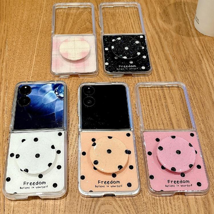 Funda para teléfono con purpurina y puntos para Honor Magic V Flip (blanca)