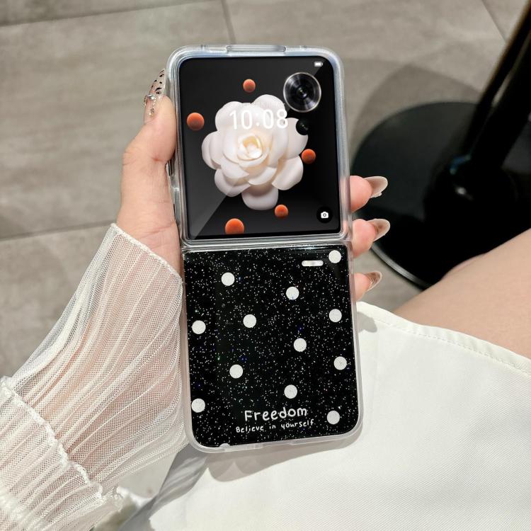 Funda para teléfono con purpurina y puntos para Honor Magic V (negra)