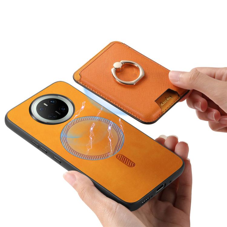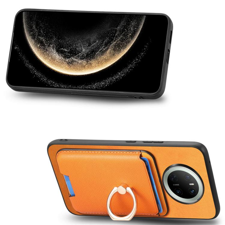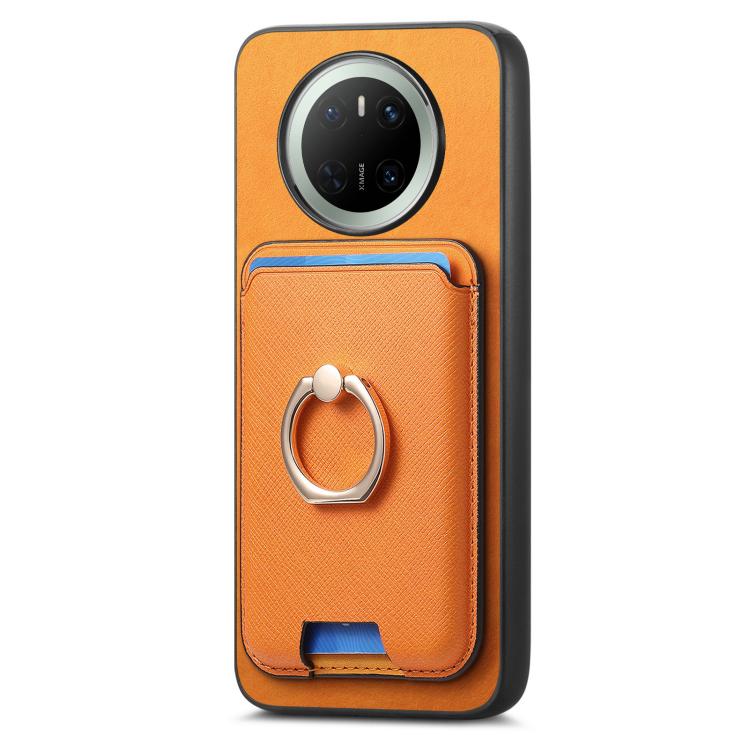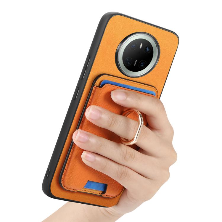 Funda para Teléfono Huawei Mate 70 con Ranuras para Tarjetas Inserción Vertical Cuero Forma Cruz (Amarillo)
