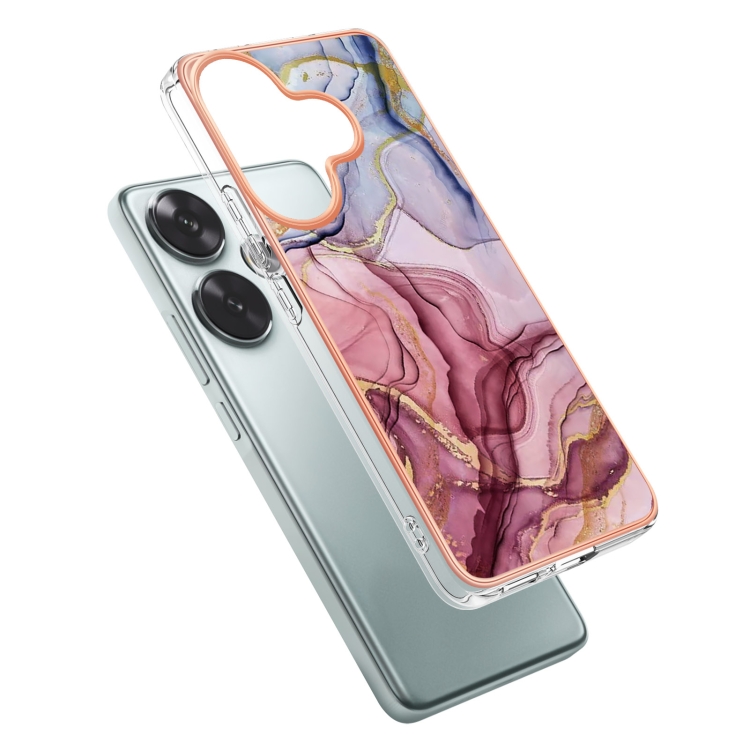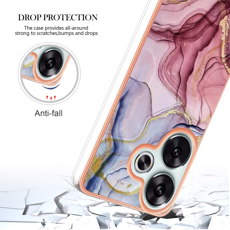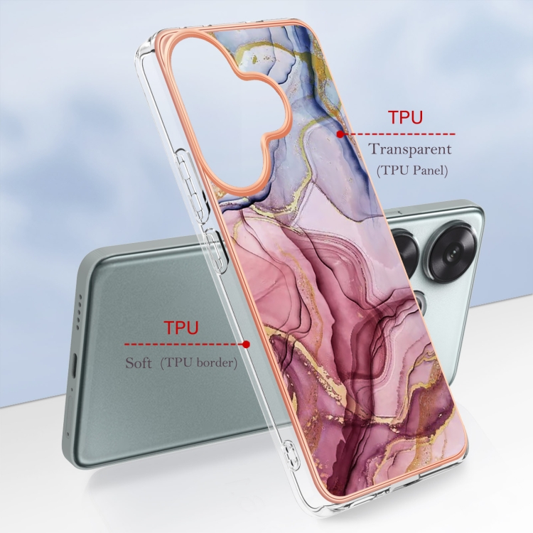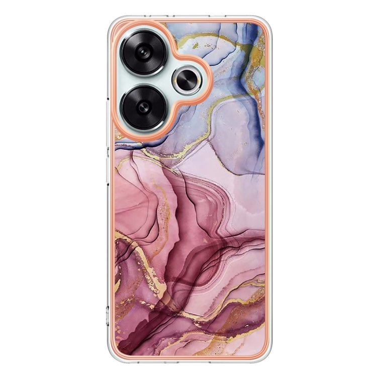 Funda para Teléfono con Revestimiento de Mármol Galvanizado de Doble Cara Imd para Xiaomi Poco F6 5G (Rosa Rojo 014)