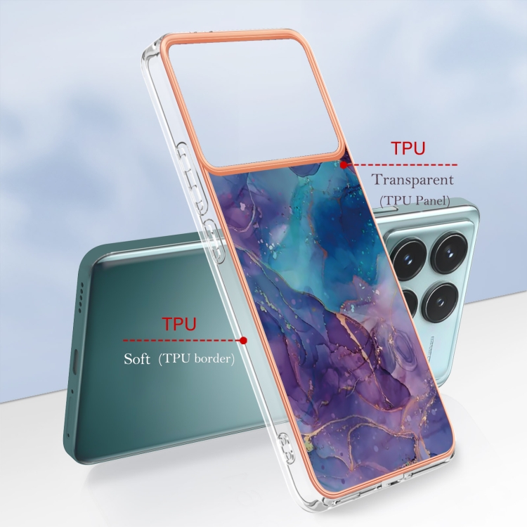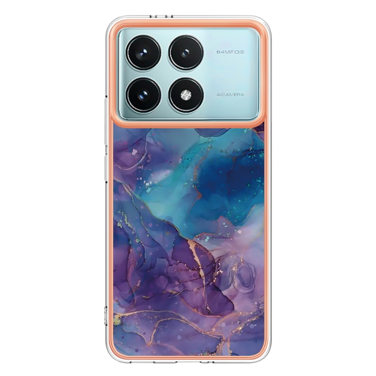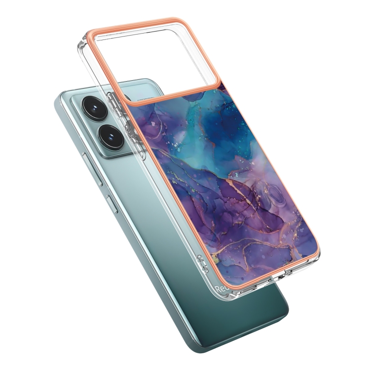 Funda para Teléfono con Revestimiento de Mármol Galvanizado de Doble Cara Imd para Xiaomi Poco F6 Pro 5G (Púrpura 016)
