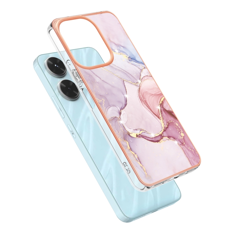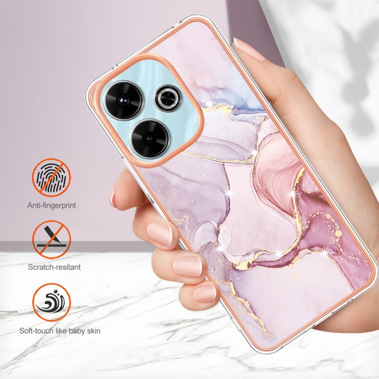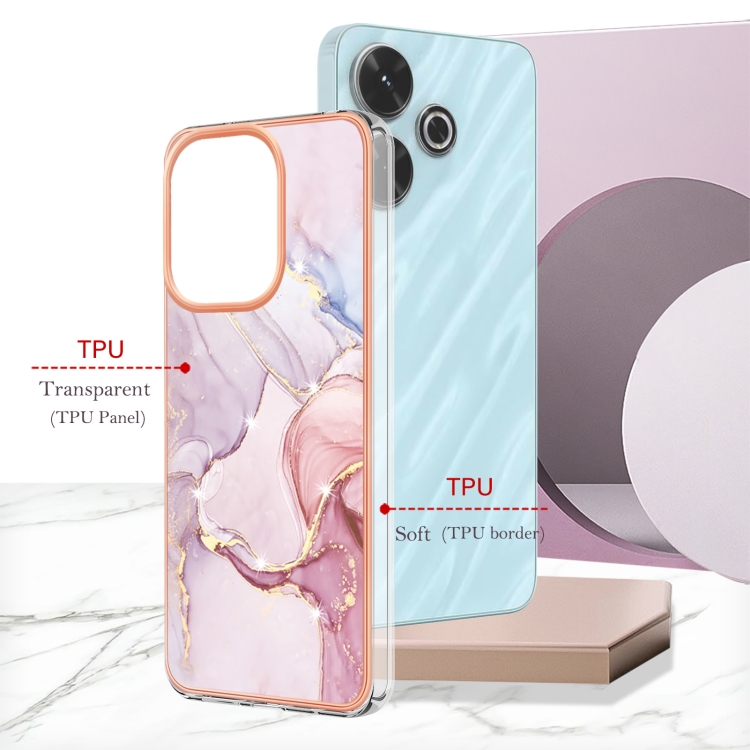 Funda para Teléfono con Revestimiento Electrolítico de Mármol de Doble Cara Imd para Redmi 13 4G (Oro Rosa 005)