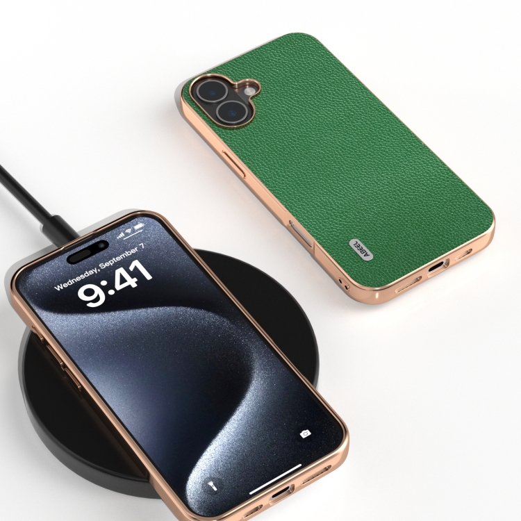 Funda para Teléfono Abeel Serie Mino Cuero Genuino Revestimiento Nanométrico iPhone 16 Plus (Verde)