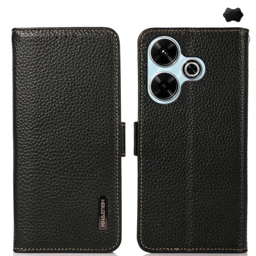 Funda para Teléfono con Rfid de Cuero Genuino con Imán Lateral Khazneh para Redmi 13 4G (Negro)