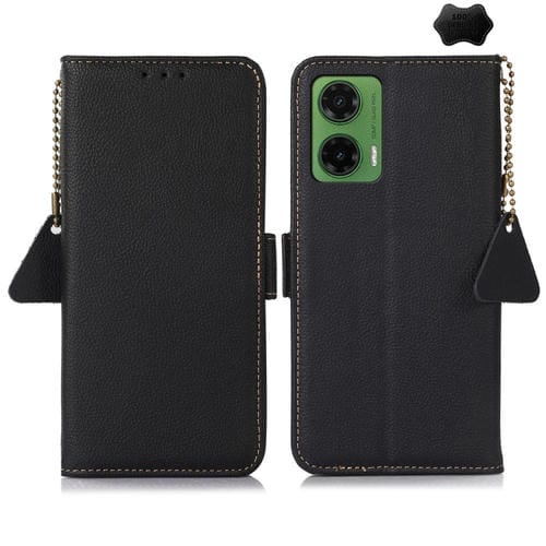 Funda para Teléfono Tj Cuero Genuino con Rfid e Imán Lateral para Motorola Moto G35 (Negro)