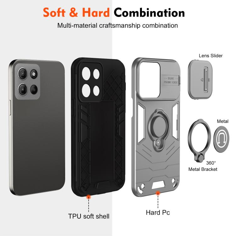 Funda para Teléfono Camshield para Motorola Moto G15 con Soporte de Anillo (Gris)
