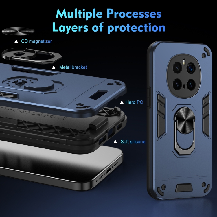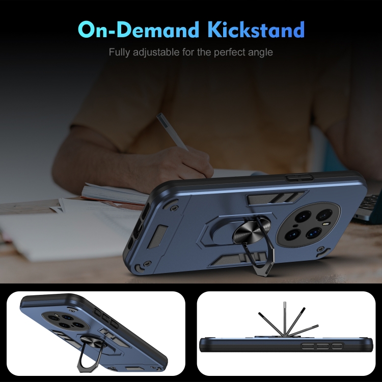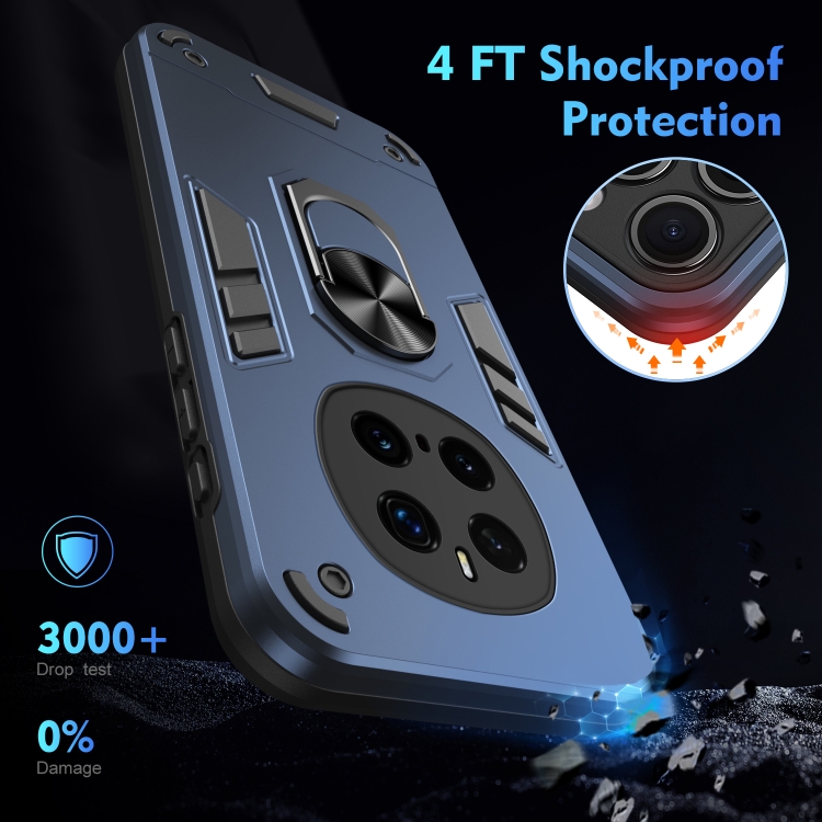 Funda para Teléfono Honor Magic7 Pro con Soporte de Anillo de Metal y Protección Antigolpes (Azul)