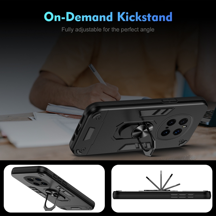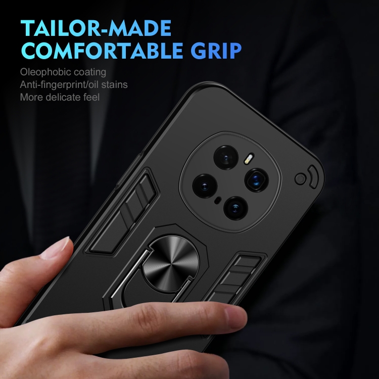 Funda para Teléfono Honor Magic7 Pro con Soporte de Anillo de Metal a Prueba de Golpes (Negro)