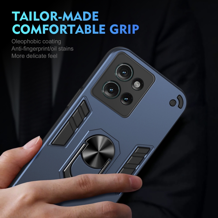 Funda para Teléfono Motorola Edge 50 con Soporte de Anillo de Metal a Prueba de Golpes (Azul)