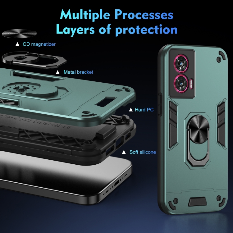 Funda para Teléfono Motorola Edge 50 Fusion con Soporte de Anillo de Metal a Prueba de Golpes (Verde)