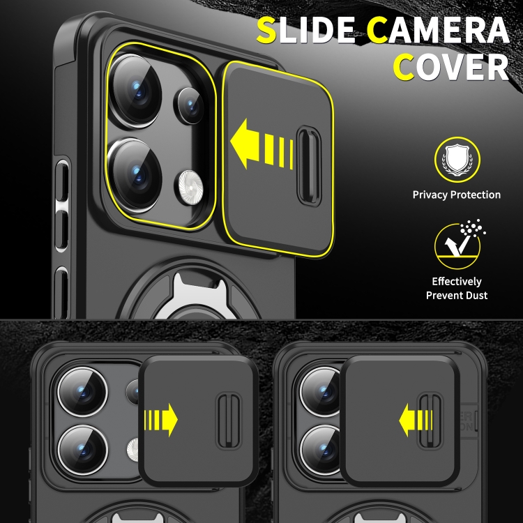 Funda para Teléfono con Soporte de Anillo Deslizante Camshield para Redmi Note 13 4G (Morado)