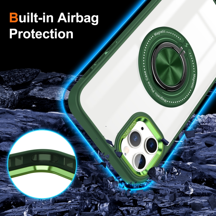 Funda para Teléfono iPhone 12 Pro Max Soporte Anillo Giratorio Magnético (Verde Oscuro)