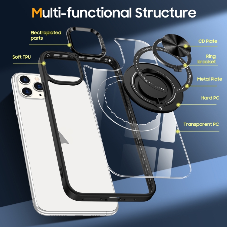 Funda para teléfono iPhone 13 Pro Max con soporte anillo giratorio magnético (Negro)