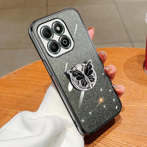 Funda para Teléfono Honor X6B con Soporte Mariposa y Purpurina Degradada (Negro)