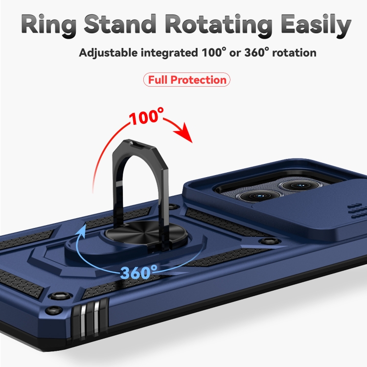 Funda para Teléfono Motorola Edge 5G 2024 con Soporte Deslizante y Protector de Pantalla (Azul)