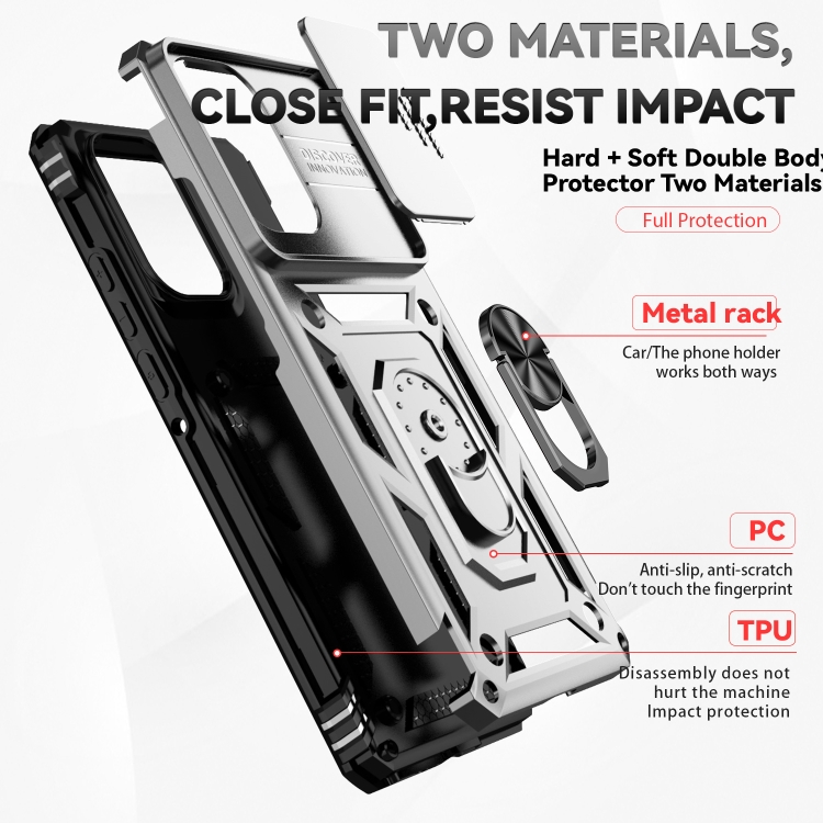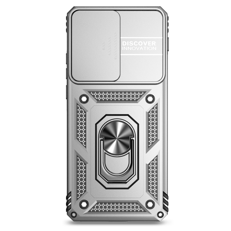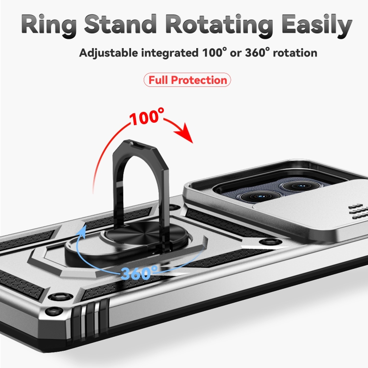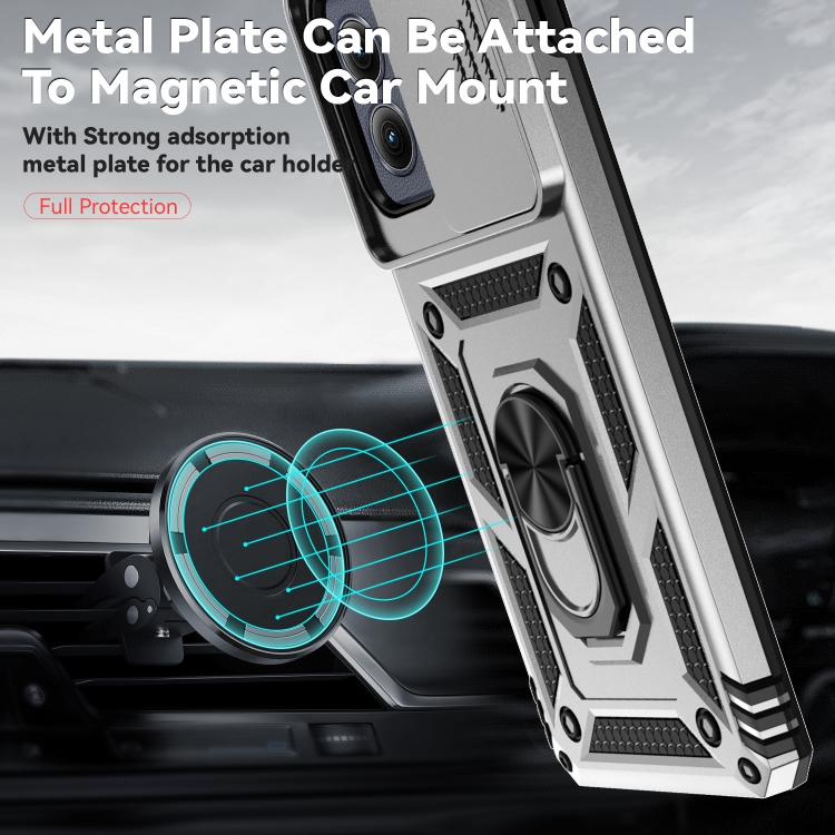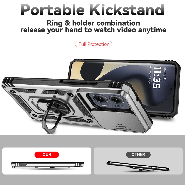 Funda para Teléfono Motorola Edge 5G (2024) con Soporte Deslizante y Protector de Pantalla (Plateada)