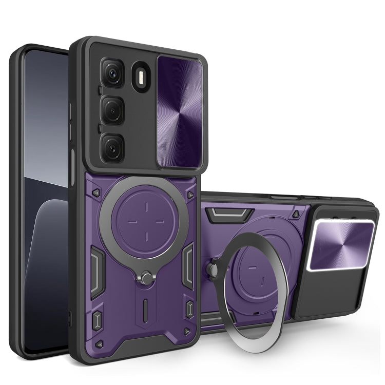 Funda para Teléfono Infinix Hot 50 4G con Soporte Magnético Deslizante y Textura de Cd (Morado)